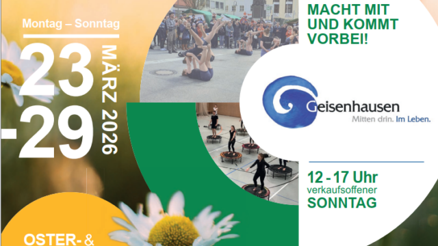 Vom 23. bis 29. März 2026 lädt die Marktgemeinde Geisenhausen wieder zur beliebten Wellness- und Gesundheitswoche mit Frühlings- und Ostermarkt ein. Unter dem Motto „Gemeinsam gesund durchs Jahr“ dreht sich alles um Bewegung, Ernährung, Achtsamkeit, Klimaresilienz und Lebensqualität.