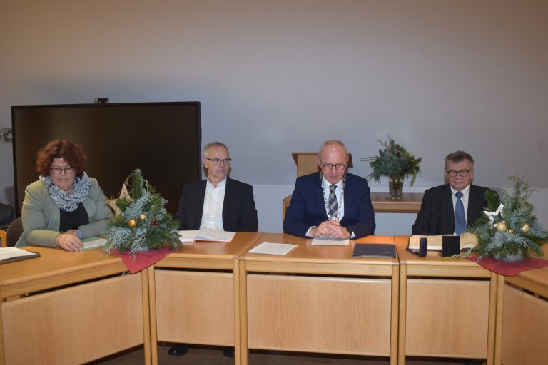 Weiter zitierte Josef Weindl John F. Kennedy mit dem Satz: „Frage, was du für den Staat tun kannst.“ Den Kopf in den Sand zu stecken sei falsch, vielmehr müsse man der Entwicklung in der Gesellschaft nicht tatenlos zusehen. Der Redner zitierte Peter Tauber, man solle dankbar rückwärts schauen und mutig vorwärts. Dem schloss Weindl als dritten Ratschlag an, „gläubig aufwärts“ zu blicken. Auch wenn in der katholische Kirche „vieles schief gelaufen“ sei, wäre auch „viel Gutes geschehen.“ Mit einem Blumenstrauß dankte der Bürgermeister Renate Weindl für das Verständnis, als der Ehemann oftmals in seinen Ämtern unterwegs gewesen war.