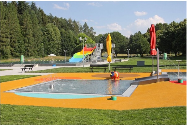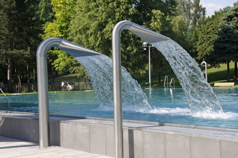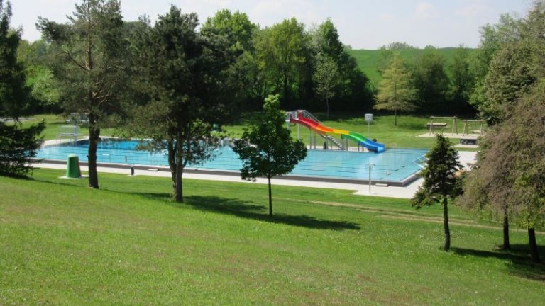 Das Bad ist mit vielen schattenspendenden Bäumen bepflanzt.