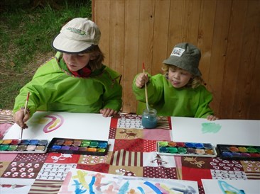 Freispielzeit am Waldplatz, gezielte Angebote, Maltisch, Werkzeug nach Einführung