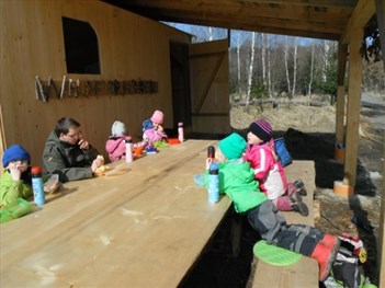 Händewaschen. Begleitet von einer Vorlesegeschichte, wird dann die zweite Brotzeit eingenommen.