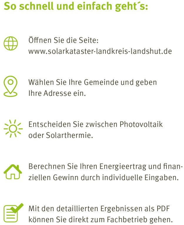 Um die Bürgerinnen und Bürger beim Ausbau von Photovoltaik und Solarthermie zu unterstützen, hat der Landkreis Landshut eine praktische Anwendung entwickelt.